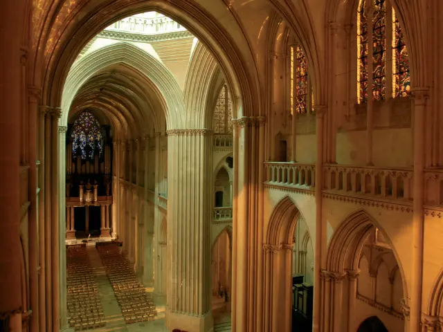 On y déambule par des galeries hautes, on y découvre des vues imprenables sur les parties basses et le chœur, on y admire les vitraux et verrières de plus près, on y découvre les parties de la cathédrale romane du 11e, les charpentes, etc. Tout ceci accompagné d’un guide conférencier du Pays d’art et d’histoire du Coutançais.