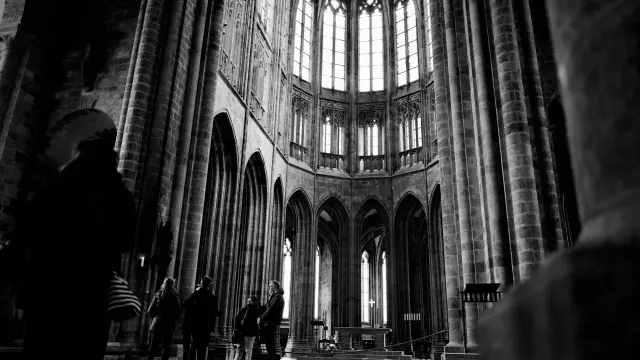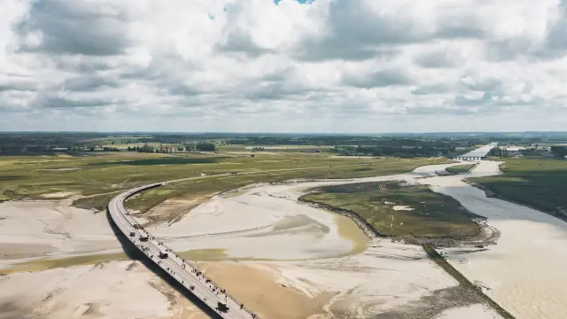 Mont Saint Michel bordé par une vaste étendue d'eau, offrant une vue imprenable.
