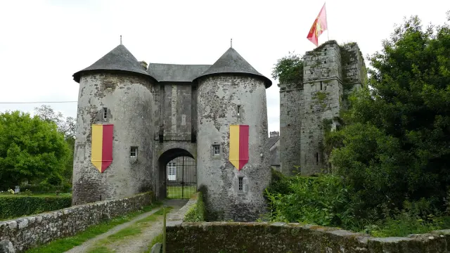 Le châtelet est l’une des parties les plus impressionnantes, à l’arrivée sur le site il est vraiment imposant et nous plonge dans l’univers médiéval. On y accède par un petit pont de pierre au-dessus des douves qui sont en eaux. Lorsque l’on visite le châtelet, on en apprend un peu plus sur les diverses attaques subies par le château au 14e et 15e siècle, lorsque les Paynel sont les seigneurs de Chanteloup. (famille rattachée également à la seigneurerie de Hambye). On peut aussi y découvrir les blasons des familles qui se sont succédées à Chanteloup et également les techniques de construction anciennes.