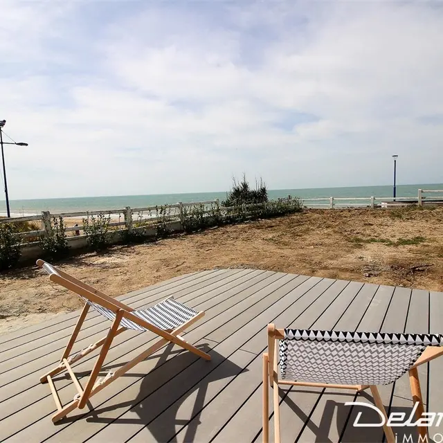 Une terrasse en bois face à la mer, idéale pour se détendre.